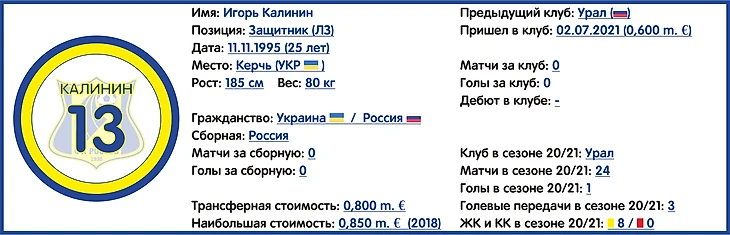 Конкуренцию на бровках им должен составить пришедший из московского «Динамо» Игорь Калинин (в прошлом сезоне играл за «Урал»), который может сыграть как справа, так и слева.