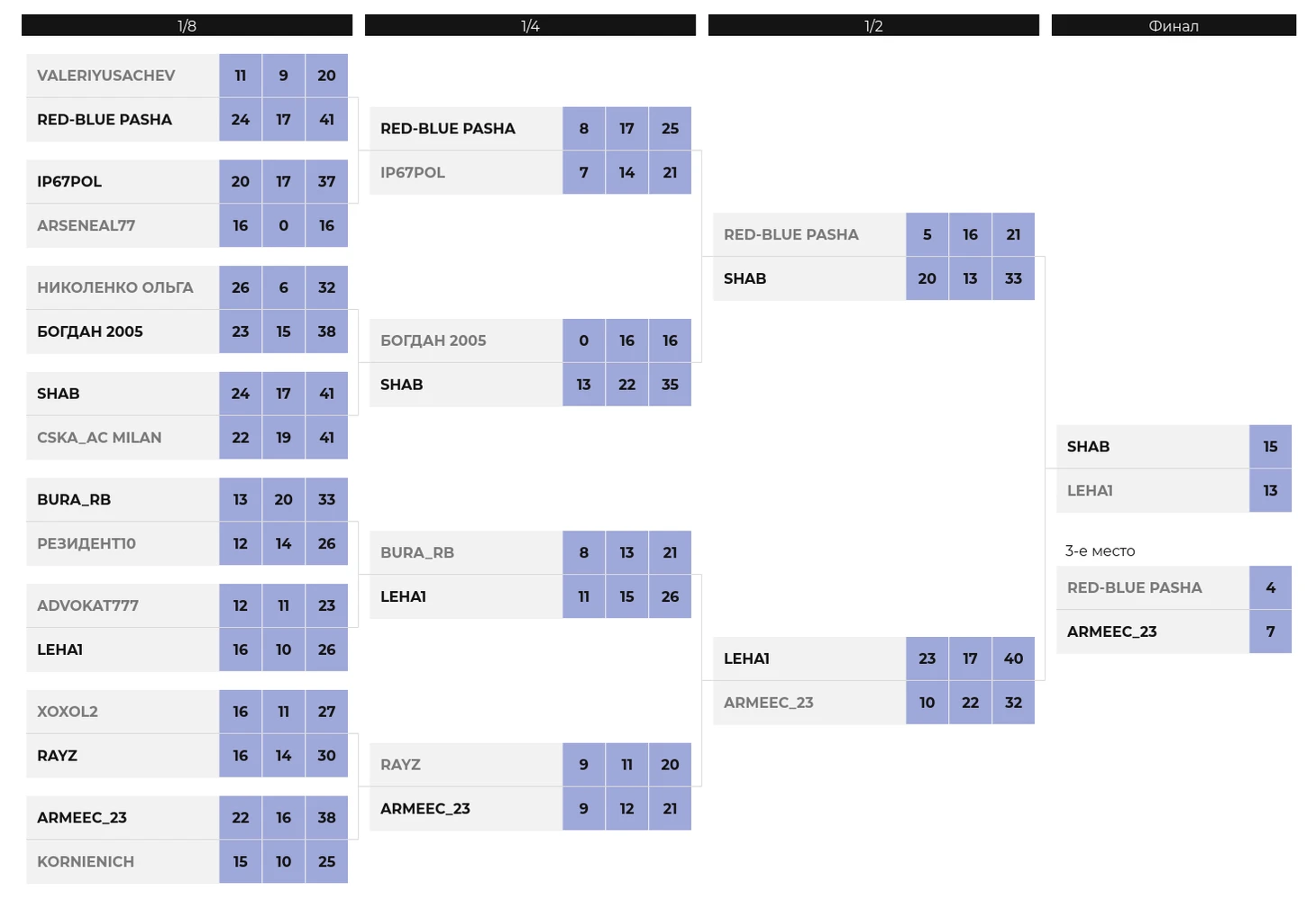 В матче за третье место, между Red-Blue Pasha и Armeec_23, сильнее оказался последний (4-7)