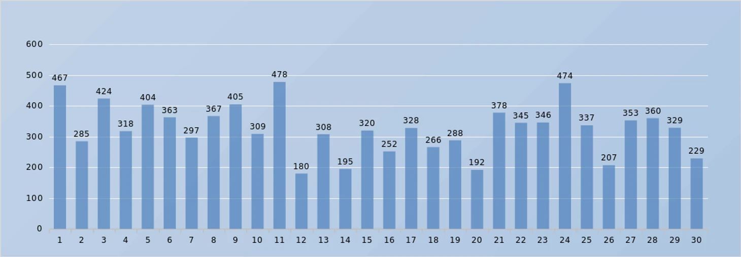 Всего, за все 30 туров выбили 9767 очков из 40200 возможных.