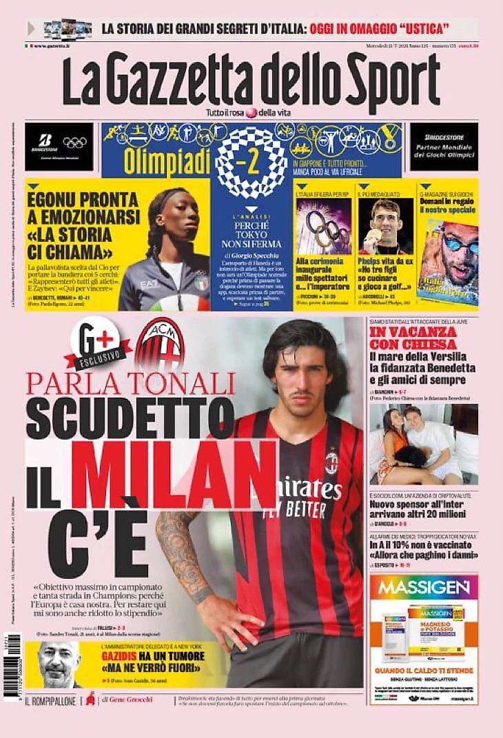 Рак у директора «Милана», Газидиса, подготовка «Ромы» к предстоящему сезону, а также ситуация с вакцинацией в Серии А – в утреннем обзоре заголовков итальянских спортивных изданий в блоге «В гостях у Кальчо».
