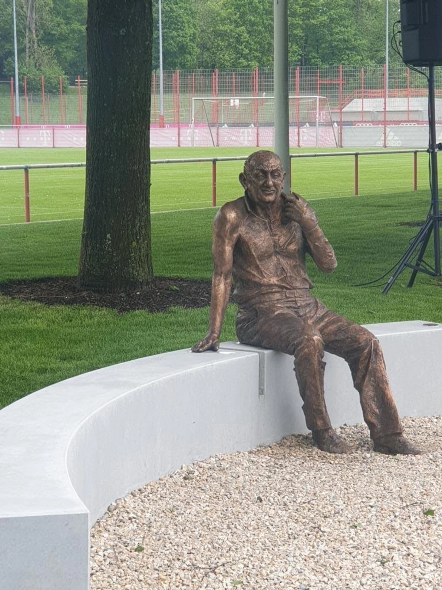 Май 2019 года. В Мюнхене на Зебенерштрассе необычно пасмурно и дождливо. На тренировочной базе мюнхенской «Баварии» собрались журналисты и все самые важные функционеры клуба. Ули Хёнесс вместе с пожилым человеком срывает покрывало с бронзовой статуи. Зрители, во главе которых Карл-Хайнц Румменигге, начинают тихонько аплодировать, все понимают важность и трепетность момента.