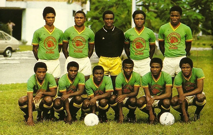 С 1971 по 1997 годы страна носила название Заир, и однажды Заир даже попал на чемпионат мира по футболу. В 1974 году на полях ФРГ конголезцы играли против Бразилии, Югославии и Шотландии и закончили групповой этап с разницей мячей 0-14, причем югославы огорчили вратаря Заира 9 раз. Причем первый матч группы против шотландцев Заир провел довольно качественно, демонстрируя неплохой футбол; крепкая британская сборная с Кенни Далглишем и Денисом Лоу забила конголезцам лишь два гола.