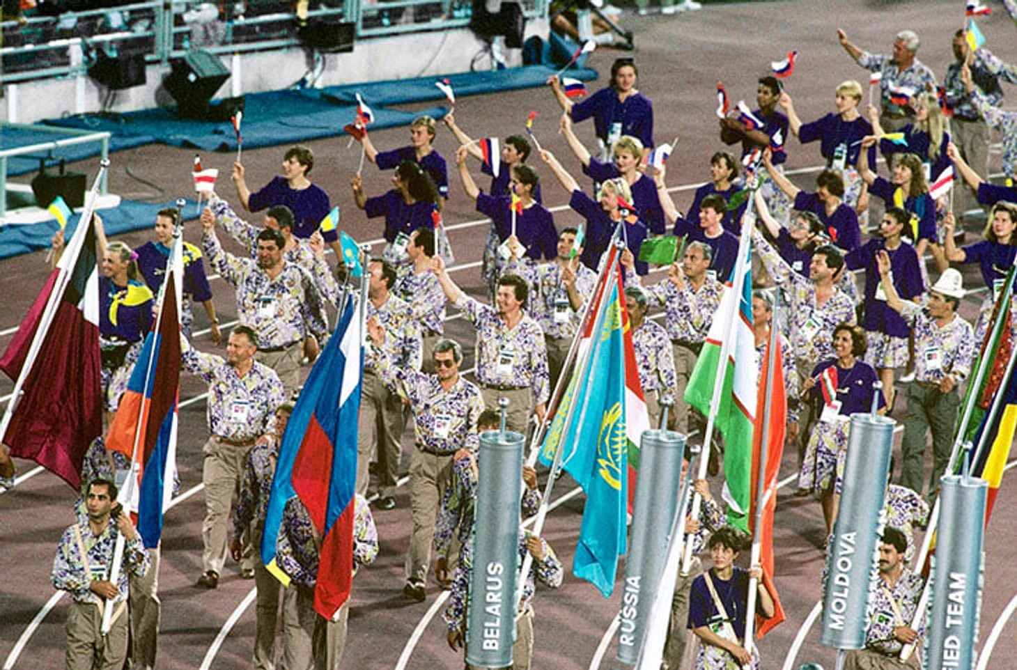 • Это первая летняя Олимпиада после распада СССР. Спортсмены 12 республик бывшего СССР выступали в составе Объединенной команды.