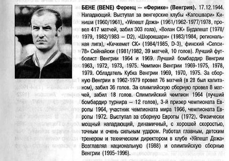 Снова упоминания о Макгрори, Роули, Зеелере, Ди Стефано, Эйсебио, Симоняне, даже о голландских бомбардирах прошлого. Бицан и Бене? Не, не слышали...Странно. КАК почти 1200 голов потерялось на полвека у венгра или чеха???