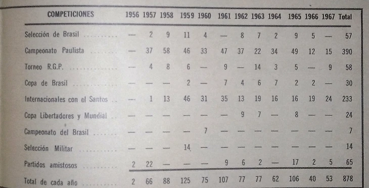 Итак, первая версия полной статистики по Пеле, сделанная такими же как я чокнутым на всю голову бразилофанами, людьми просто любящими Бразилию и умеющими работать в архивах. Вторая версия, возможно расширенная и дополненная, выйдет к концу года. Автором будет известный бразильский журналист Томас Росолино из Goal.com.br. В его планах перелопатить и так называемые "товарняки" и дать информацию по ним. Почему так называемые? Потому что ФИФА долгие десятилетия, да что десятилетия-почти век- не делала НИКАКИХ разграничений по статусу матчей клубов. Впрочем официально ФИФА не пересматривала цифры Пеле. НИКОГДА.