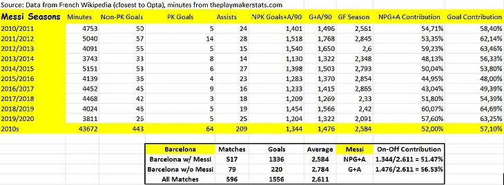 По Месси из французской Вики, Орта, ogol и theplaymakerstats.com