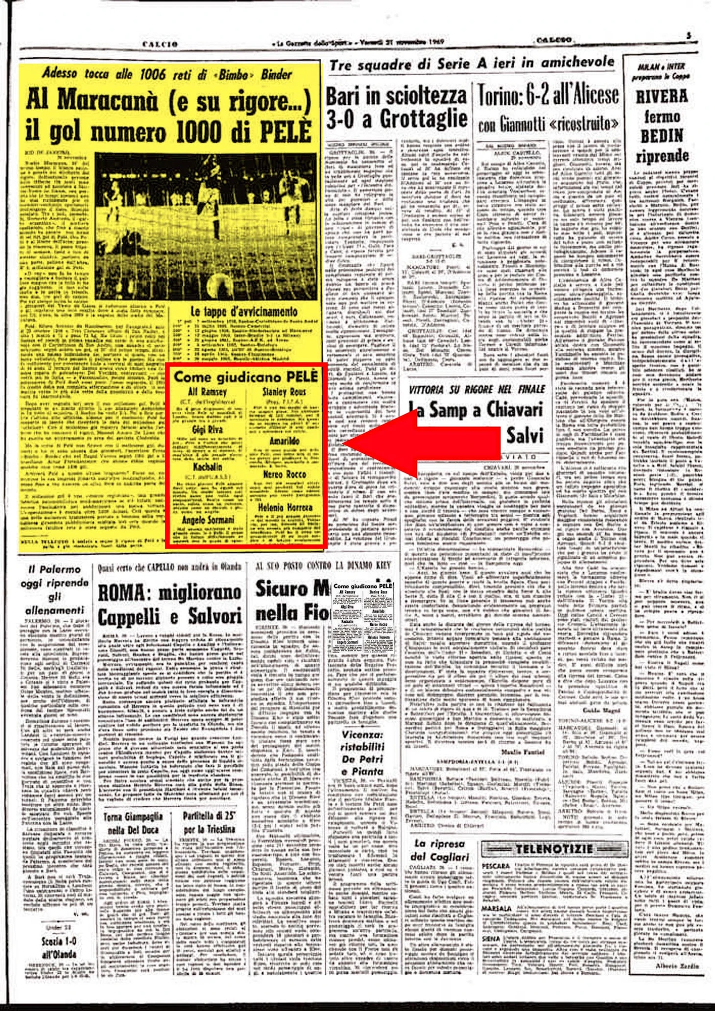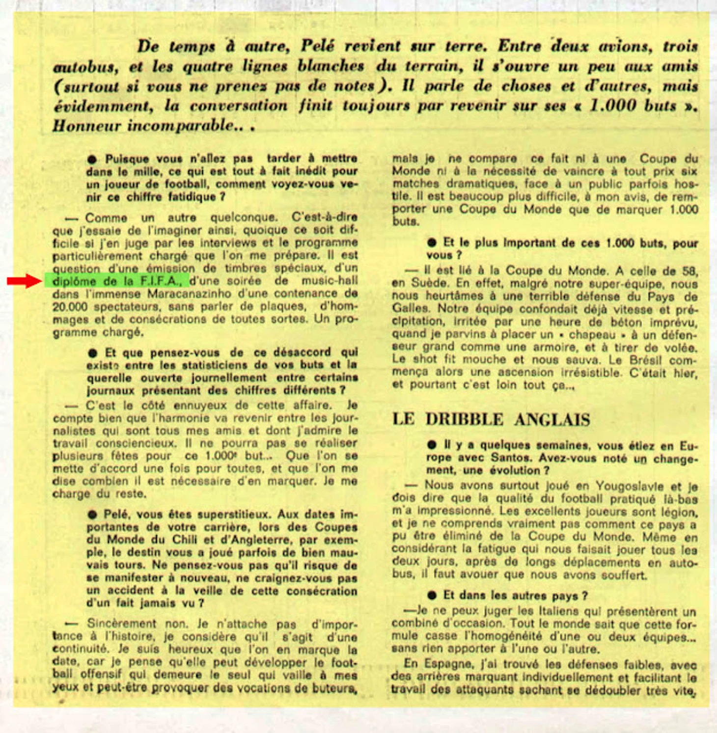 На этом пожалуй остановимся в первой части. Еще есть масса разных изданий-уругвайские, аргентинские, Лос-Анджелес пост, об этом писали все. Я выбрал достаточно репрезентативную выборку. Вывод? Никто в 1969 не ставил под сомнение сей рекорд. Ок, с учетом Биндера и Пушкаша, повторение рекорда. Ни журналисты, ни действующие тренеры и игроки по обе стороны океана. Более того, спустя полвека это не ставилось под сомнение. К столетию ФИФА Пеле получил еще один диплом