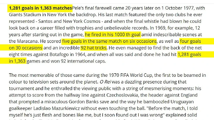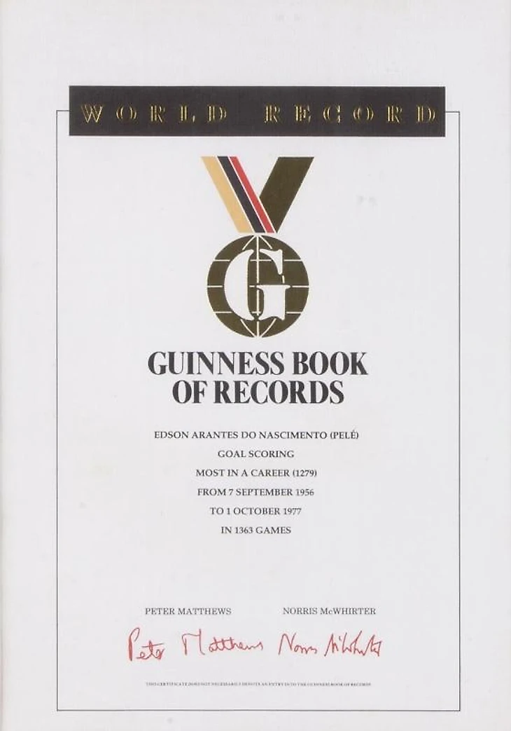 Есть еще один забавный артефакт. Понимаю что сегодня Книга рекордов Гиннесса переполнена даже не мусором, а подобрать цензурного определения этого всего я не могу, но все же-цифры Пеле признаны и здесь