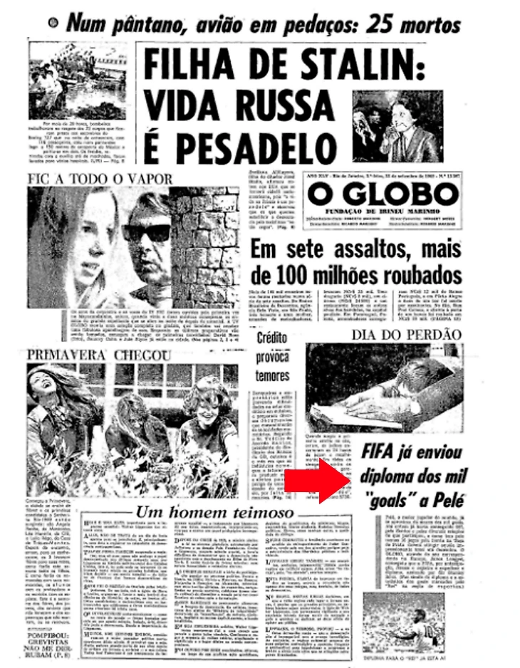 Еще в 1968 они запускали обратный отсчет до тысячи Пеле. Вот номер от 16.04.1968