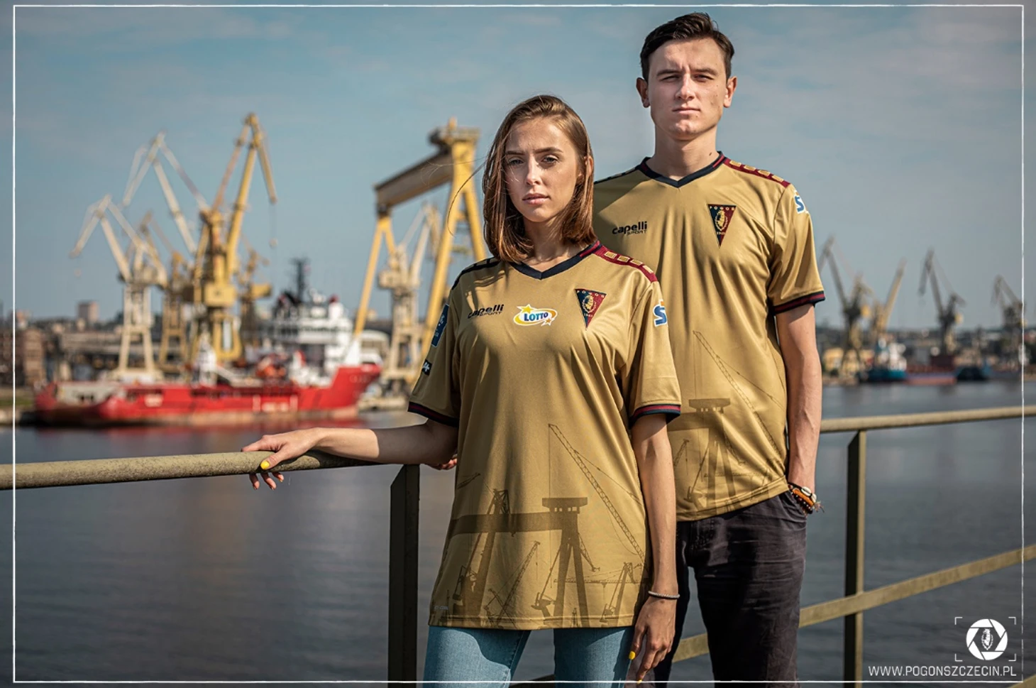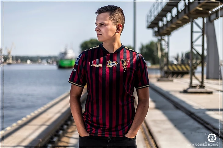 Домашний комплект «Погони» выполнен в гранатово-синих цветах, основных цветах клуба. Единственным новшеством является количество полос на футболке. По признанию клуба, на форме еще никогда не было так много полос. Серьезно обновился у щецинцев выездной комплект, выполненный в золотом цвете. Авторы признают, что были вдохновлены кранами щецинской судоверфи, которые в палящий солнечный день окрашиваются в золотой цвет. Сами краны, кстати, изображены в нижней части футболки. На задней части комплектов над фамилией футболистов была размещена надпись «Portowcy» (прозвище команды), которая стала объединяющей для нынешней презентации.