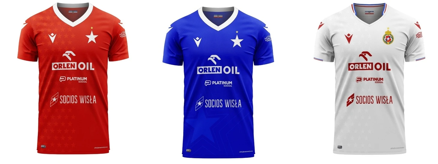 У одноклубников плоччан форма выполнена в таких же цветах, только у краковчан эти цвета являются основными, поэтому форма «висляков» является уже привычной для болельщиков краковчан. На красном и синем комплектах логотип клуба заменён на символ «Вислы» - белую звезду. Появился на форме и новый спонсор - Orlen, который также является спонсором плоцкой «Вислы».