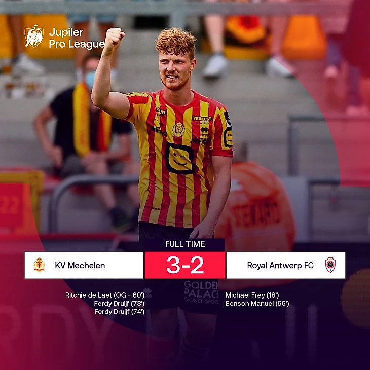 «Антверпен» неплохо смотрелся на старте дерби и забил быстрый гол – правда, его нельзя назвать командной заслугой: Фрай разобрался с обороной и все сделал сам. Гол Бенсона во втором тайме тоже забит благодаря индивидуальному мастерству. Кажется, в этом и проблема: «Мехелен» показал настоящую командную игру и переломил ход матча. «Антверпен» же решил, что дело сделано, хотя его конкретные игроки просто сотворили два гола – по остальным атакующим параметрам «Мехелен» его превосходил. В итоге закономерно превзошел и по количеству забитых мячей.