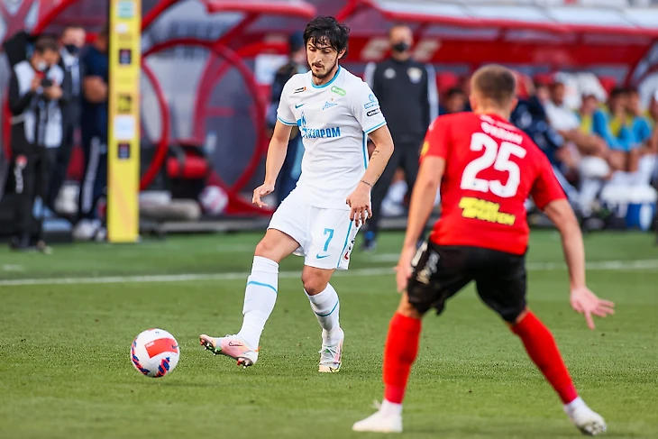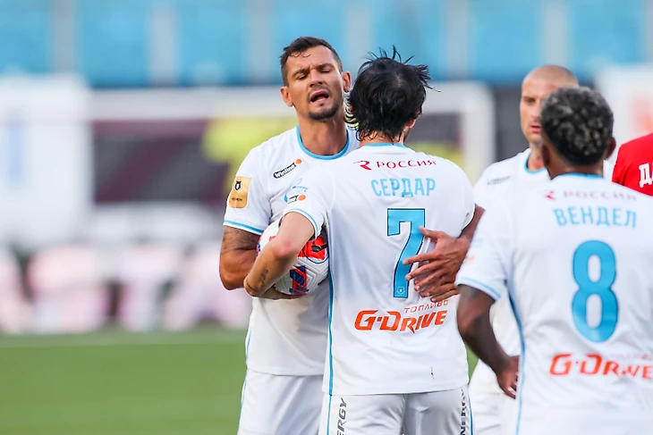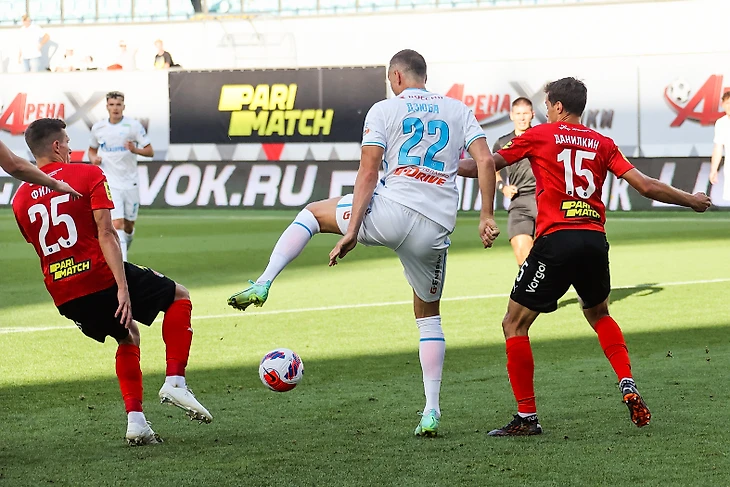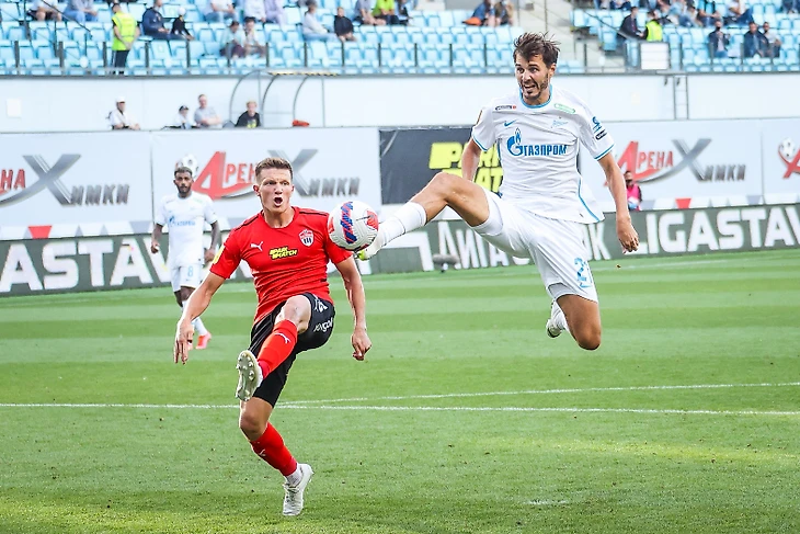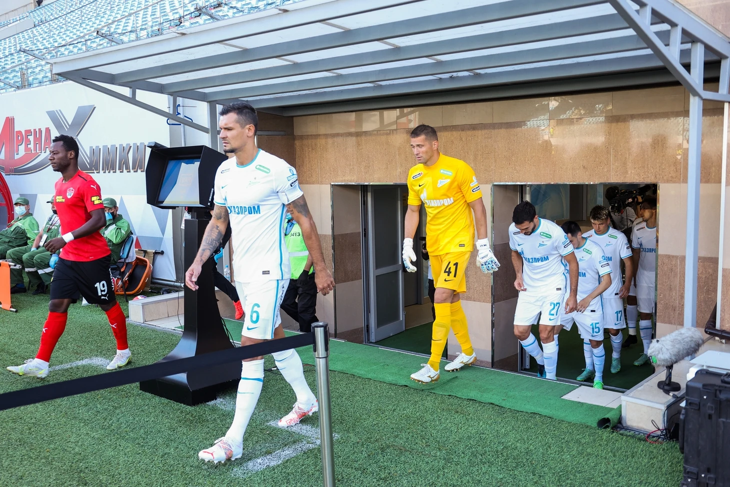 Зенитовцы с первым минут ринулись в бой. Начали смело атаковать ворота хозяев. И такая резвая игра привела к потерям в команде сине-бело-голубых. На 8-й минуте Магамед Оздоев получил травму колена, нарушив правила на защитнике «Химок» Филине. Магомед остался на поле, пытался разбегаться, но надолго его не хватило и вскоре он попросил замену.