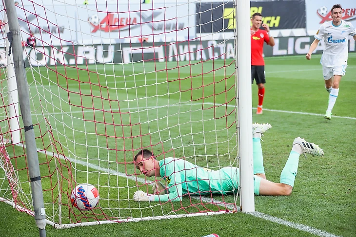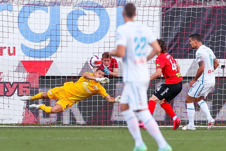 На 28-ой минуте счет был открыт, но к сожалению не петербуржцами. Илья Кухарчук ("Химки") на добивание забил мяч в ворота Кержакову, который уж точно не успел бы отразить этот удар. 1:0.