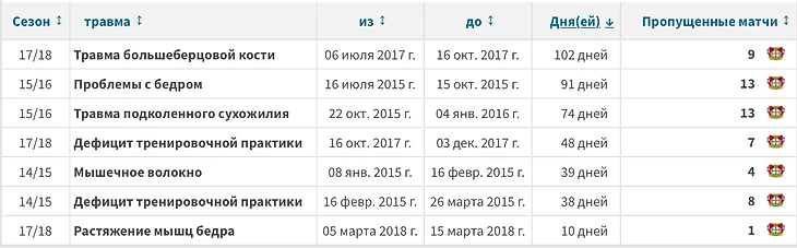 Последующие сезоны тоже не так однозначны. Вроде бы играл (21 матч в сезоне 18/19), а вроде и не играл (10 матчей в сезоне 17/18).