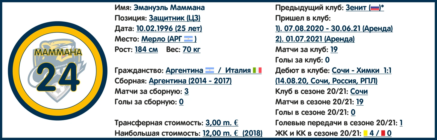 Также на еще один сезон в клубе остался и аргентинец Эмануэль Маммана, права на которого по-прежнему принадлежат питерскому «Зениту».