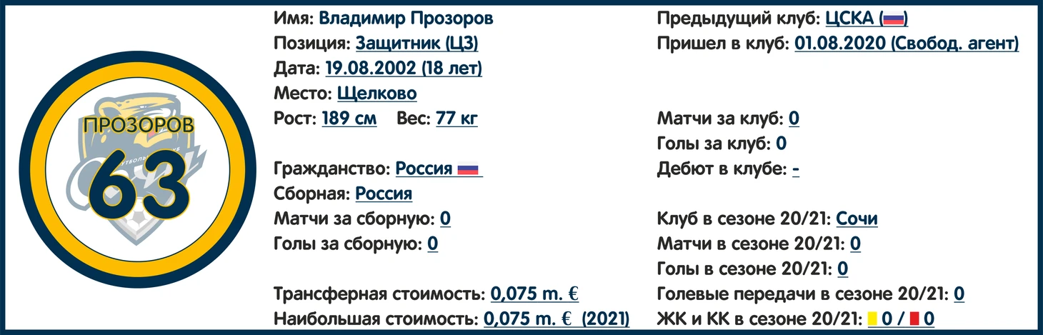 Прохин скорее всего будет игроком основного состава сочинцев и может стать одним из настоящих открытий предстоящего сезона, и кто знает, возможно игрок, прошедший практически через все возрастные группы сборной России (включая молодежную сборную), уже в этом сезоне дойдет и до главной команды страны.