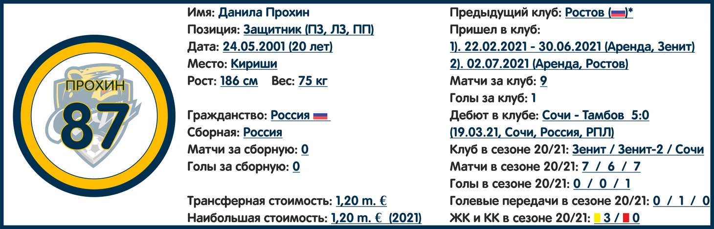 В прошлом сезоне молодой Данила Прохин успел поиграть за «Зенит» в Лиге Чемпионов, где сыграл с «Брюгге» и дортмундской «Боруссии», причем в последнем поединке он провел на поле все 90 минут.