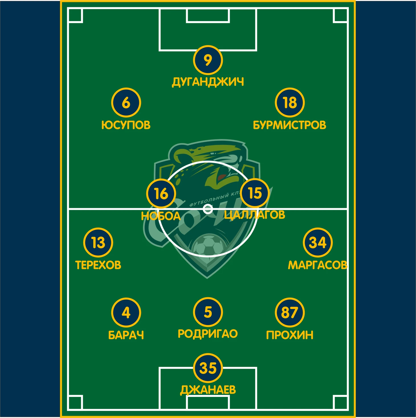 В центральной зоне играет главная звезда команды и ее лидер, эквадорец Кристиан Нобоа, в паре с которым должен выходить либо цепкий Ибрагим Цаллагов, либо же купленный за рекордные для сочинцев деньги Викториен Ангбан («Сочи» заплатил французскому «Мецу» за этого новичка более 4 млн €).