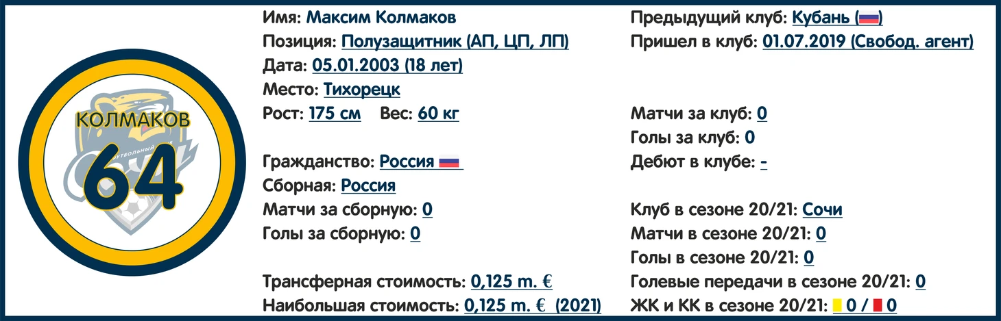 Воспитанник краснодарского футбола перешел в команду еще в 2019 году, став с тех пор одним из главных лидеров молодежного состава сочинцев (40 матчей и 6 голов за два неполных сезона).