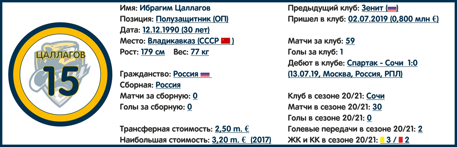 Ибрагим Цаллагов - 53 матча (2019 - н.в.)