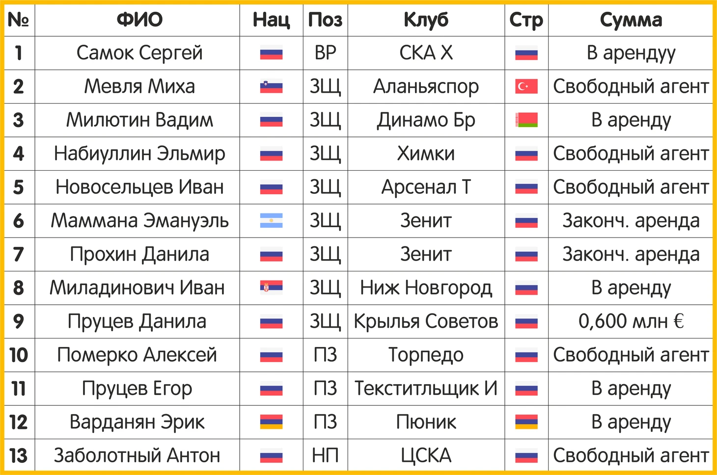 По именам, конечно же видно, что покинули клуб весьма добротные игроки - защитники Миха Мевля, и Эльмир Набиуллин, полузащитник Данила Пруцев, а также главный нападающий сочинцев Антон Заболотный, вернувшийся в свою родную команду («ЦСКА»).