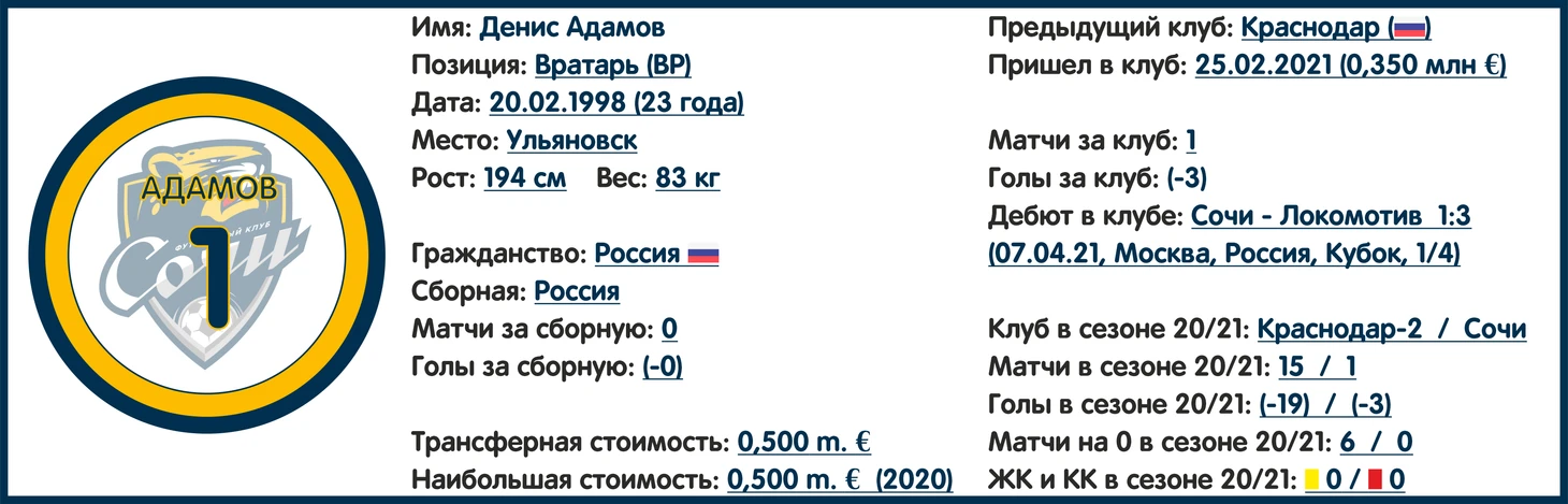 На предсезонных сборах сочинской команды Заболотный и Адамов играли поочередно, но вот в квалификации Лиги Конференций и матче чемпионата в старте был именно первый.