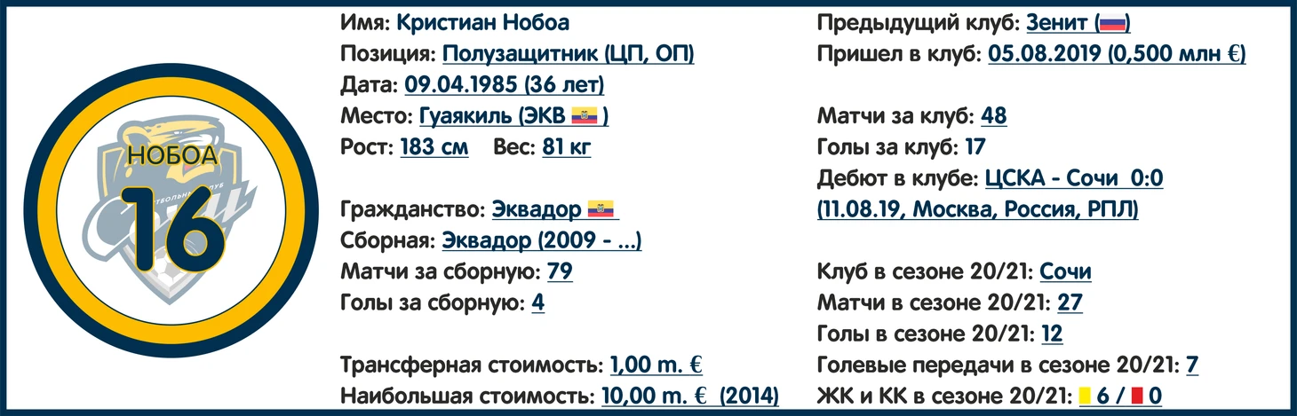 Кристиан Нобоа является одним из лучших легионеров в истории российской Премьер-Лиги.