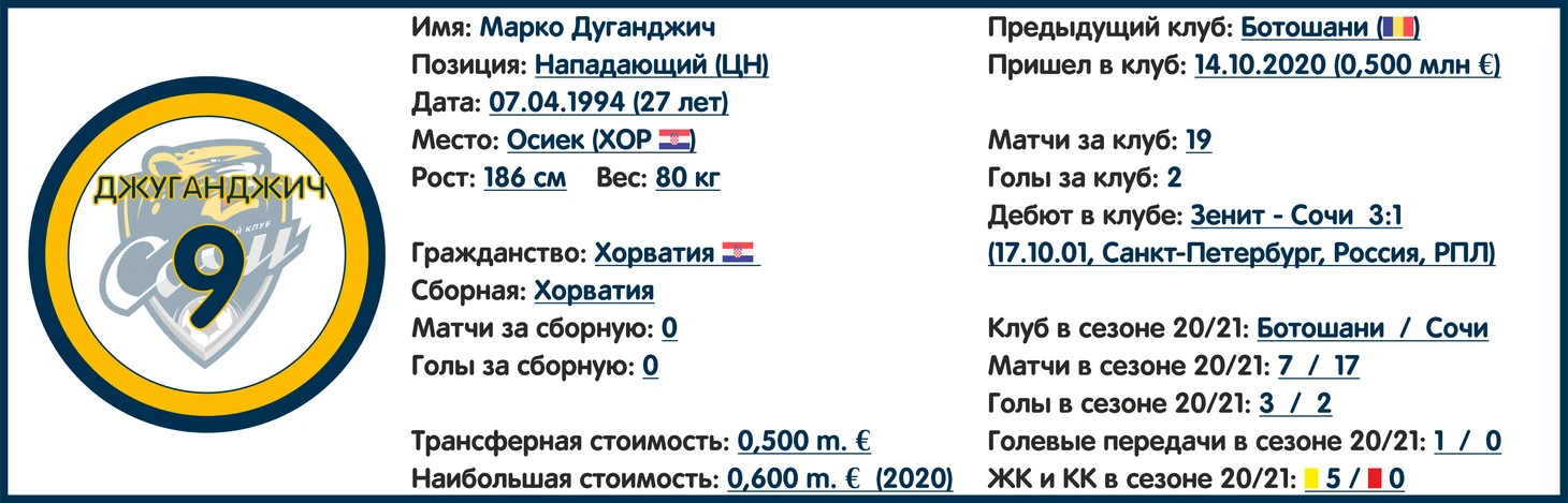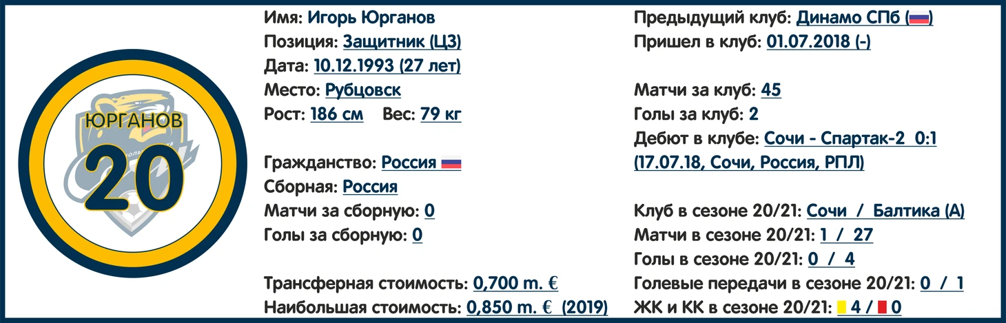 А вот в «Сочи» в прошлом сезоне по-настоящему раскрылся, проведя свой лучший сезон в карьере, причем отметился непривычной для себя атакующей игрой (9 голов + 4 передачи).