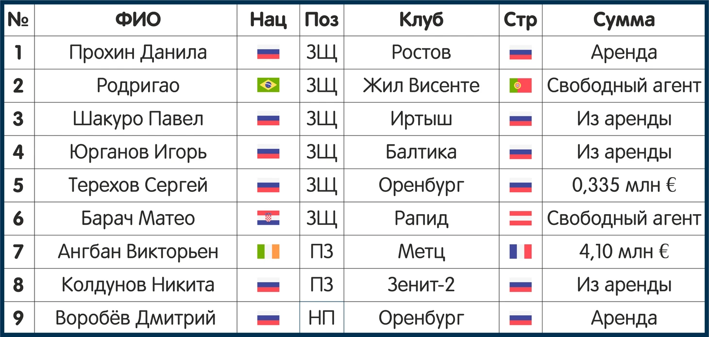 Потенциально этот ход можно понять, ведь именно сюда были куплены бразилец Родригао (из португальского «Жил Висенте») и Матео Барач, перешедший из венского «Рапида», однако на мой взгляд этот ход достаточно рискованный, ведь совсем непонятно как заиграют новички.
