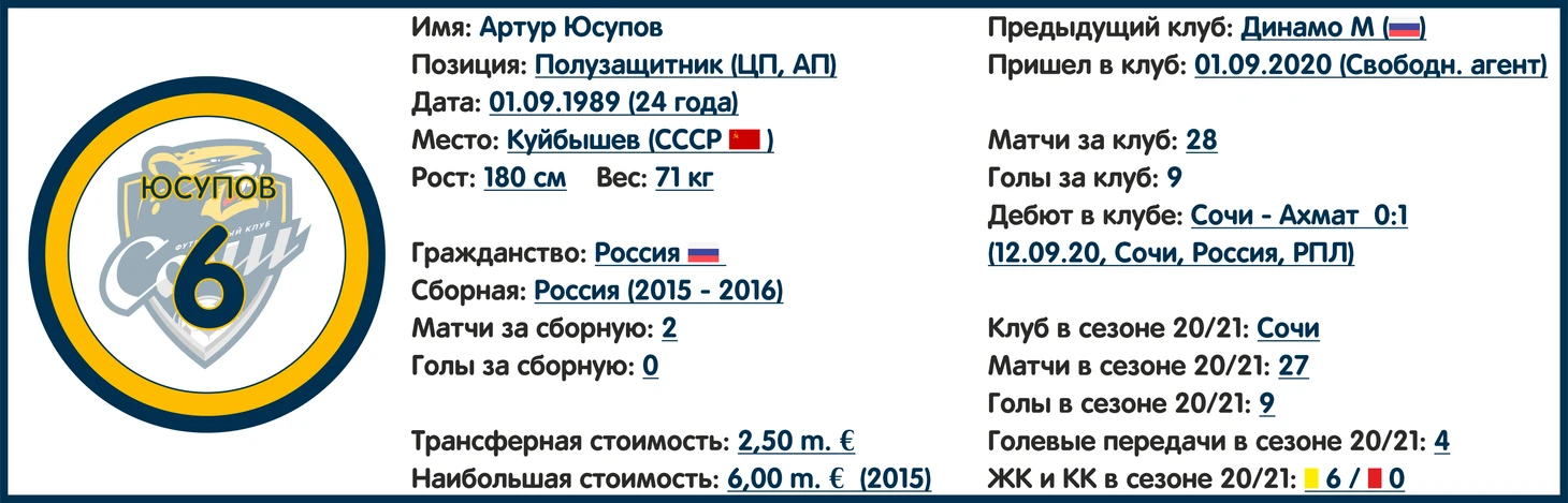 Артур Юсупов является ещё одним ветераном, играющим в составе сочинского клуба.