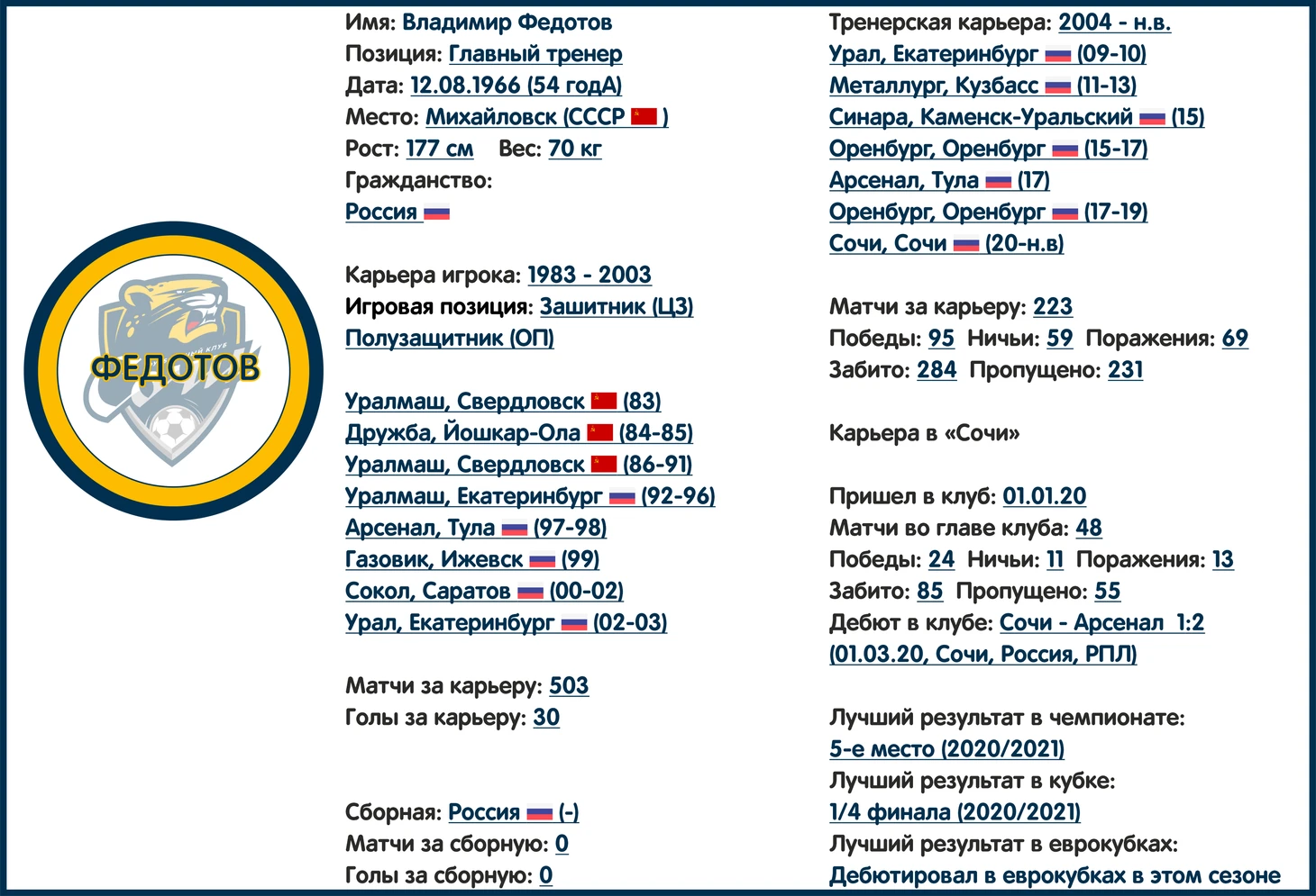 Чемпионат России. РПЛ. Сезон 2021/2022. ФК «Сочи»: состав, статистика, исторические факты и многое другое