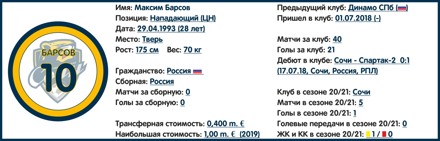Максим Барсов был тем человеком, который вел «Сочи» в Премьер-Лигу, и его 19 забитых мячей стоили очень многого для попадания новообразованной команды в РПЛ, однако самому ему посчастливилось сыграть в этой лиге только спустя 2 года.