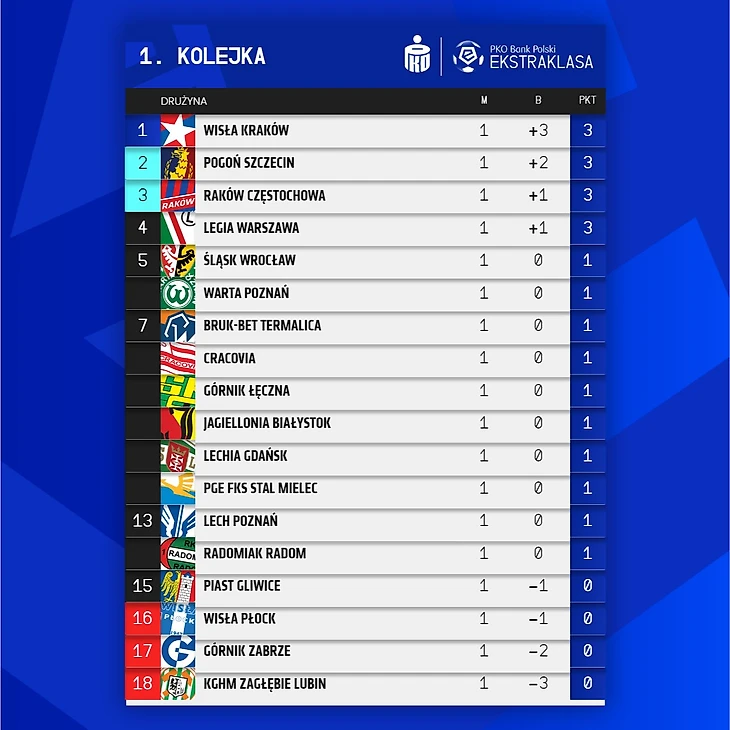 В минувший уикэнд стартовал новый сезон Экстракласы. Девять матчей подарили немало интересного: никто из новичков элиты не проиграл, в Гливице прошёл матч, который по итогам сезона назовут одним из лучших в сезоне, в Щецине не дождались дебюта Подольского, но увидели гол своей молодой звезды, а в Кракове прошёл показ обновлённой краковской «Вислы».