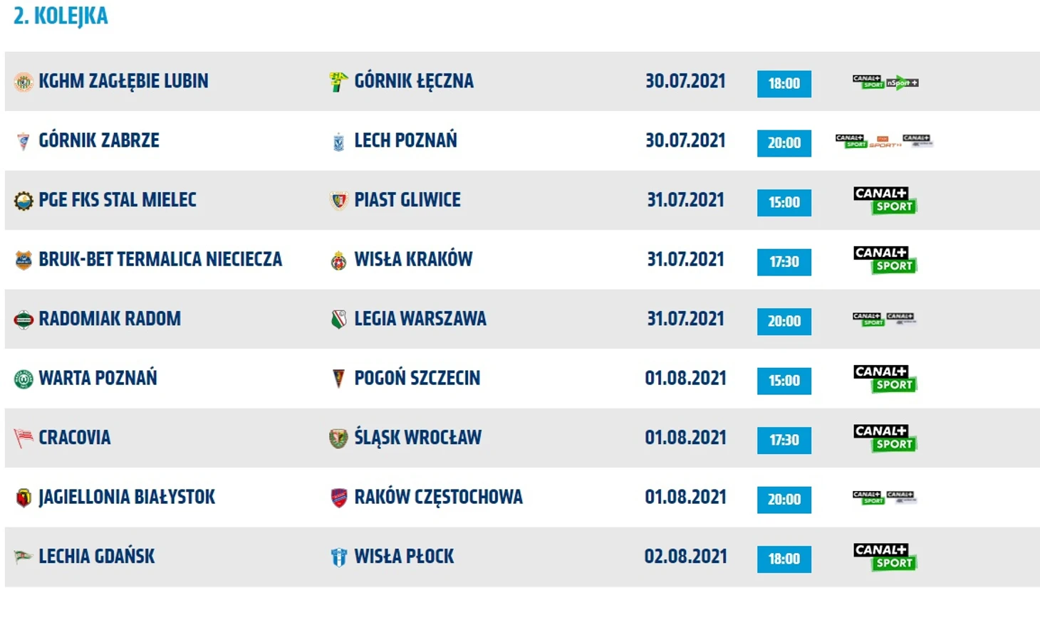 Фото: ekstraklasa.org, lechpoznan.pl, gornik.leczna.pl, jagiellonia.pl, rakow.com, slaskwroclaw.pl, wisla.krakow.pl.