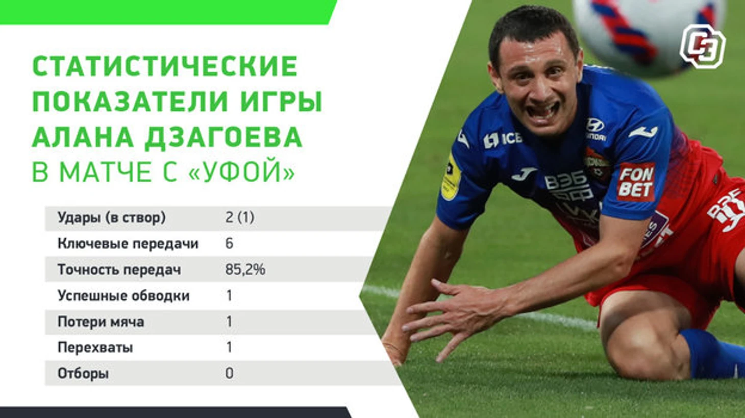 Армейцы довели матч до победы, а Дзагоева признали лучшим игроком встречи. Портал WhoScored оценил игру полузащитника в 7,95 балла — больше только у Заболотного (8,01) и Игоря Акинфеева (8,14). На счету Дзагоева сразу шесть ключевых передач. Столько же у Облякова, но он отыграл весь матч без замен. Алан, в свою очередь, провел на поле всего лишь один тайм.