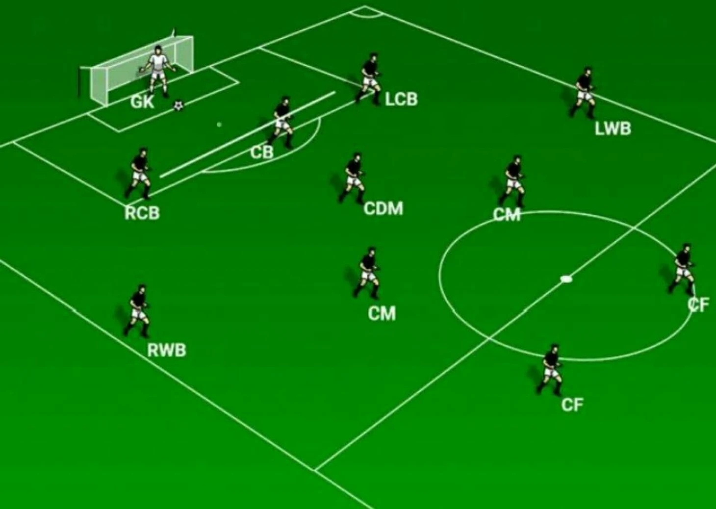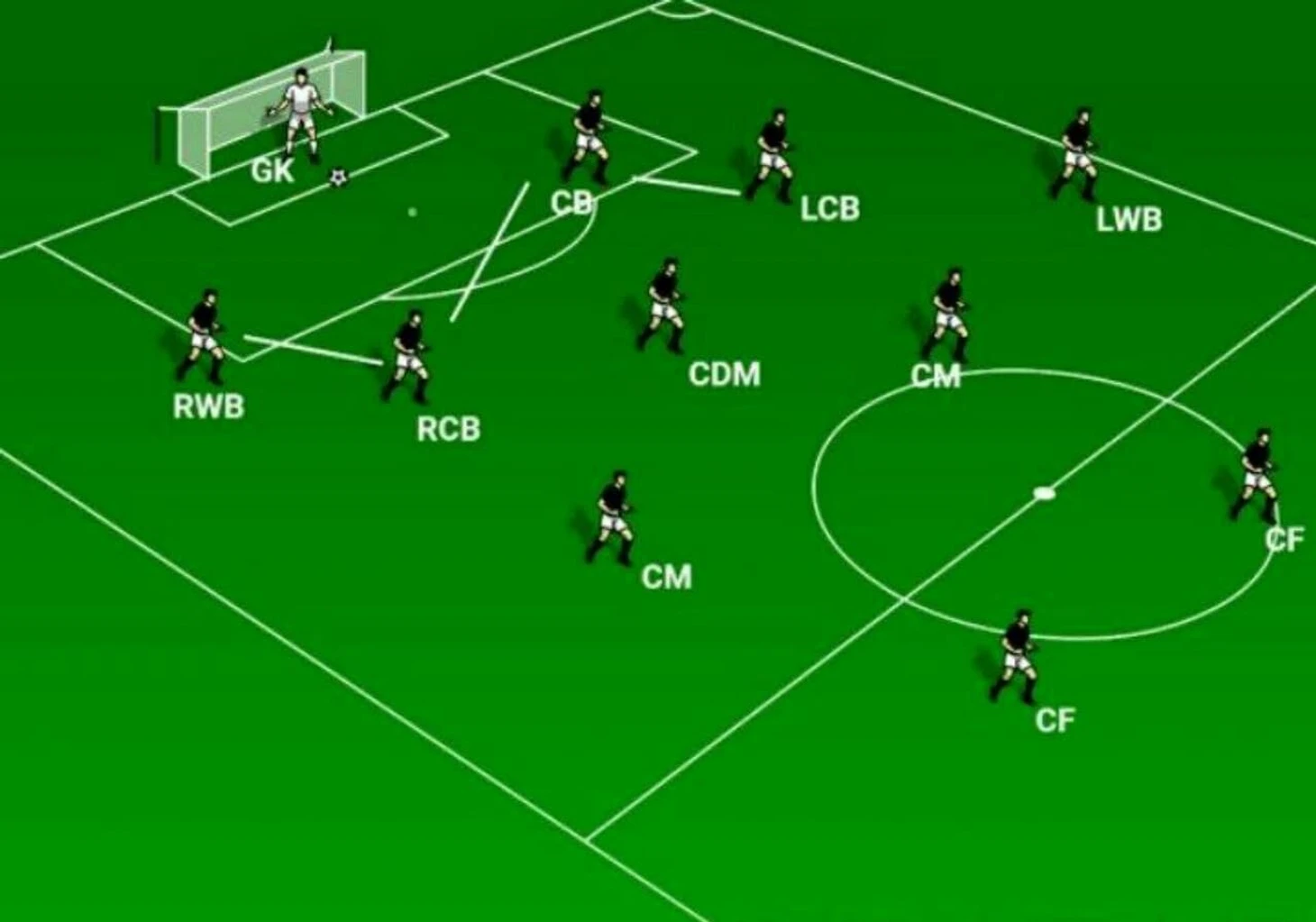 Если один из защитников ушёл и не успел занять позицию, то защитная линия перестраивается в четвёрку.
