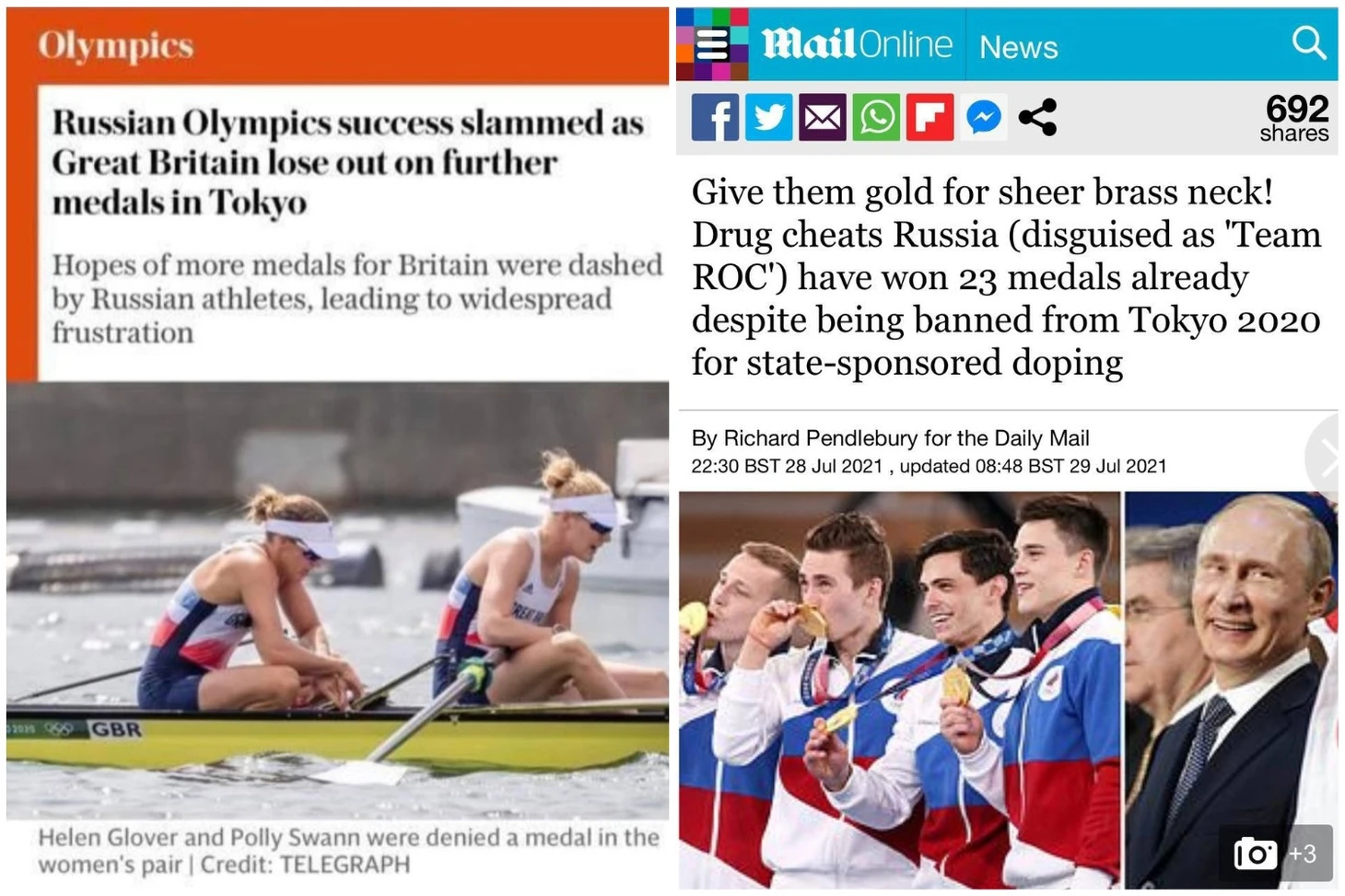 «Дайте им золото за неприкрытую наглость. Допинговые мошенники из России (прозванные «Команда РОК») уже взяли 23 медали, хотя их так-то отстранили от игр в Токио-2020 из-за государственной системы допинга», – Daily Mail.