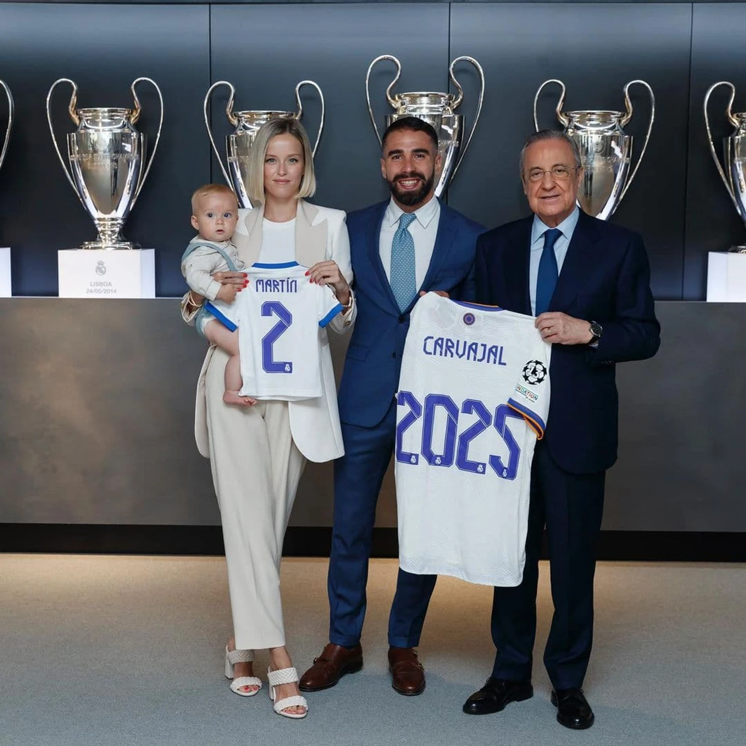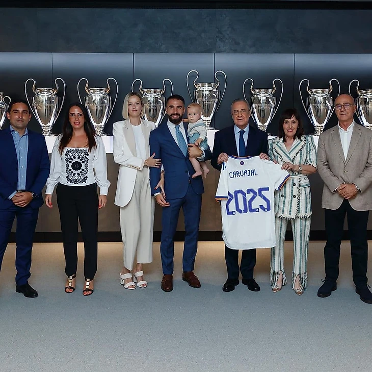 Вчера Дани Карвахаль продлил контракт с «Реалом» до 2025 года. На официальной церемонии подписания защитник был вместе с самыми близкими людьми – родителями, сыном и женой.