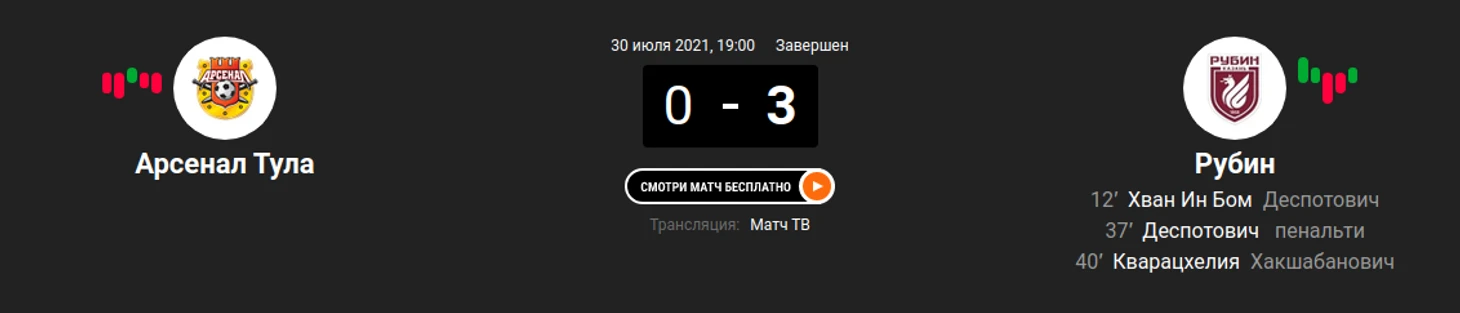 1) "Арсенал" - "Рубин" (0:3)