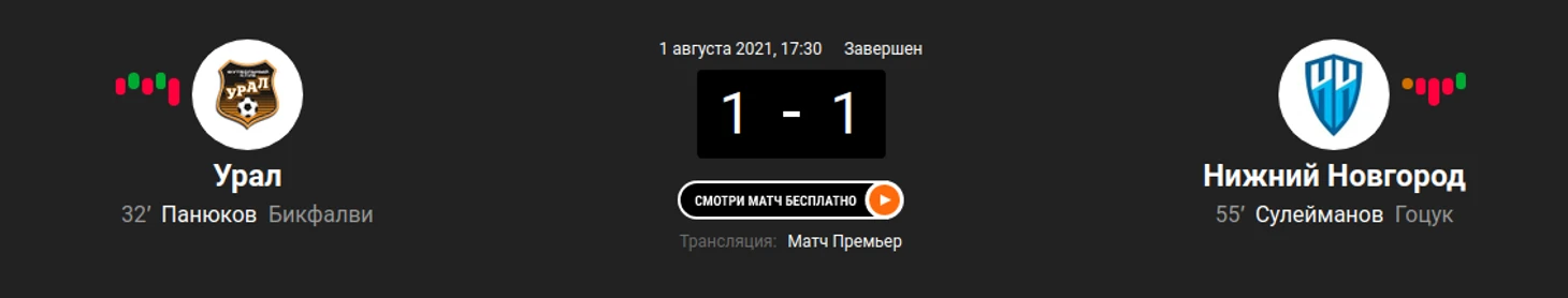 5) "Урал" - "Нижний Новгород" (1:1)
