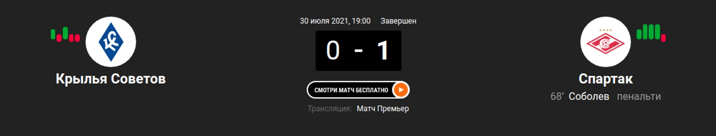 2) "Крылья Советов" - "Спартак" (0:1)