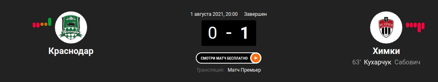 6) "Краснодар" - "Химки" (0:1)