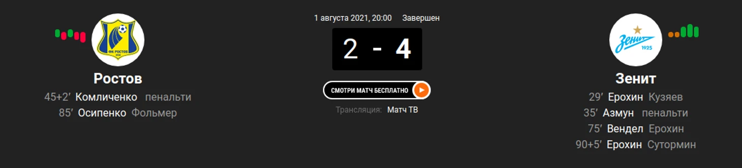 7) "Ростов" - "Зенит" (2:4)