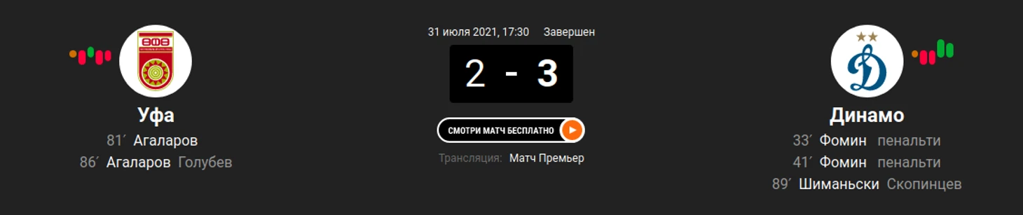 3) "Уфа" - "Динамо" (2:3)
