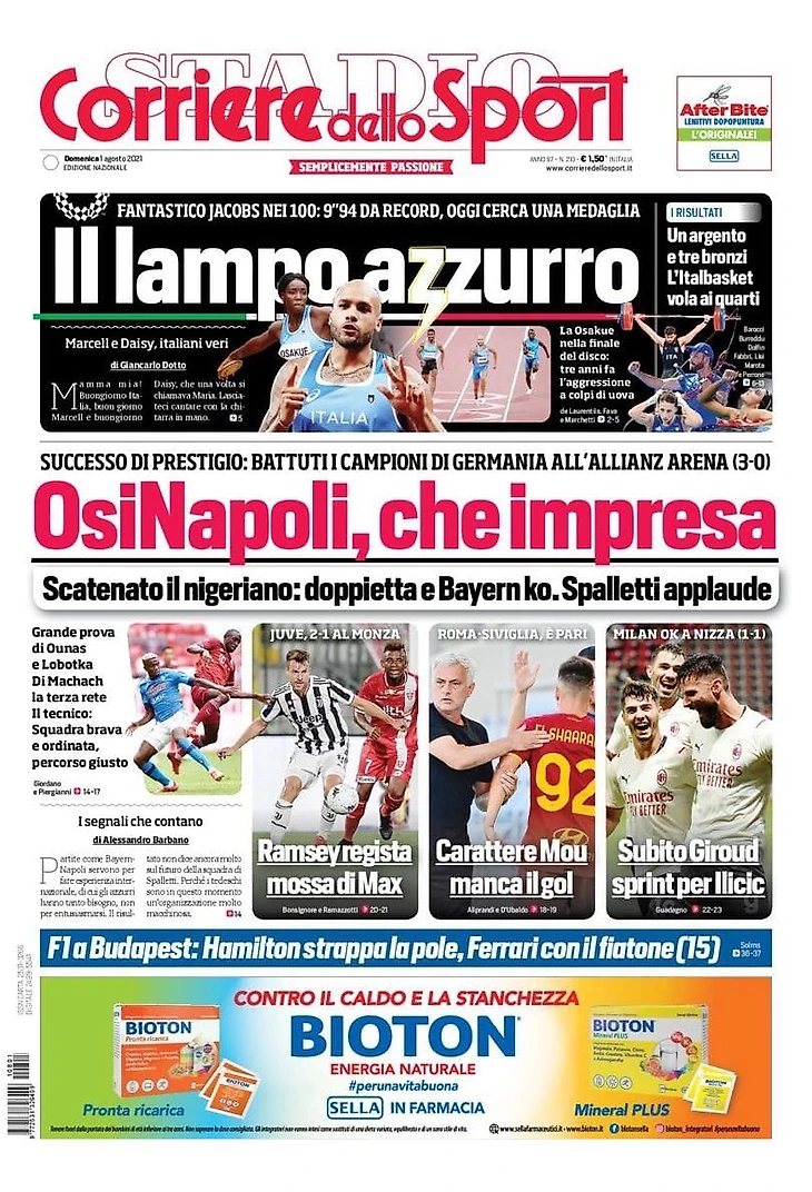 ОсиНаполи, каков шедевр. Заголовки Gazzetta, TuttoSport и Corriere за 1 августа