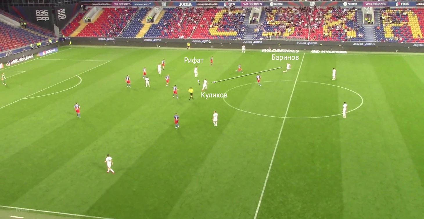 Как раз на позиции десятки Жемалетдинов и получил первый пас от Куликова – в первом тайме он не оказывался в этой зоне.