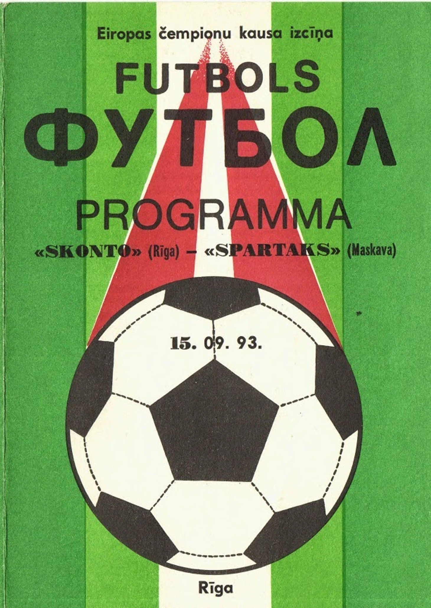 В первые Спартак сыграл в Лиги Чемпионов в далеком 1993 году. На дворе 15 сентября, матч проходил в гостях. Соперником москвичей была Рижская команда - Сконто.