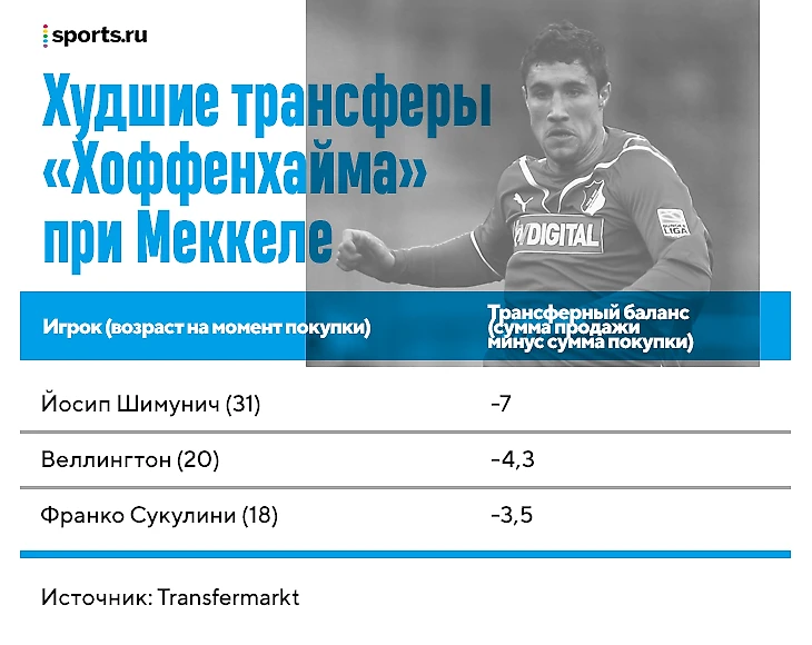 Главный трансферный промах Меккеля того периода, который признает он сам, – это покупка аргентинского полузащитника Франко Сукулини. «Хоффенхайм» отдал «Расингу» 4,6 млн евро за 18-летнего опорника, которого называли новым Маскерано и которым восхищался сам Диего Марадона. Но в итоге аргентинец провел лишь 7 матчей в Бундеслиге, помотался по арендам в Италии и Испании и так нигде толком и не заиграл. Сейчас ему 30 лет, и он без клуба.