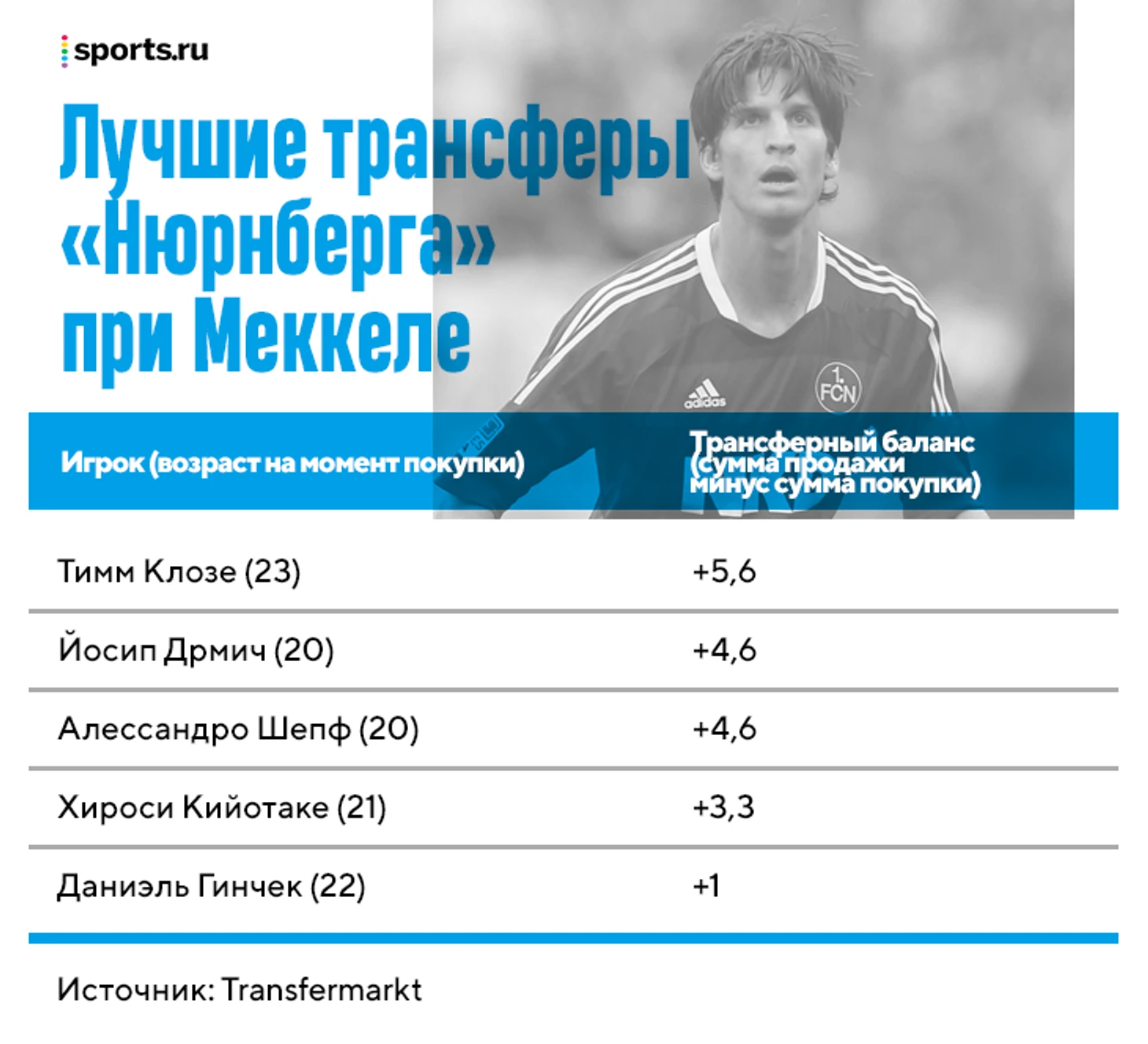 Во времена Меккеля «Нюрнберг» активно шерстил Восточную Европу. Без выдающихся успехов, но и не провально. Нашли поляка Мариуша Степинского (продали с мини-убытком, но потом он дорос до Серии А, сейчас играет в «Вероне»), чехов Адама Глоушека (купили за 1 млн, перепродали за 1,5 млн) и Томаша Пекхарта (взяли за 2 млн, на пике оценивался в 4, но ушел бесплатно). Еще из молодежки «Ман Сити» забрали знакомого нам по РПЛ словака Роберта Мака за 250 тысяч евро, когда ему было 19 лет.